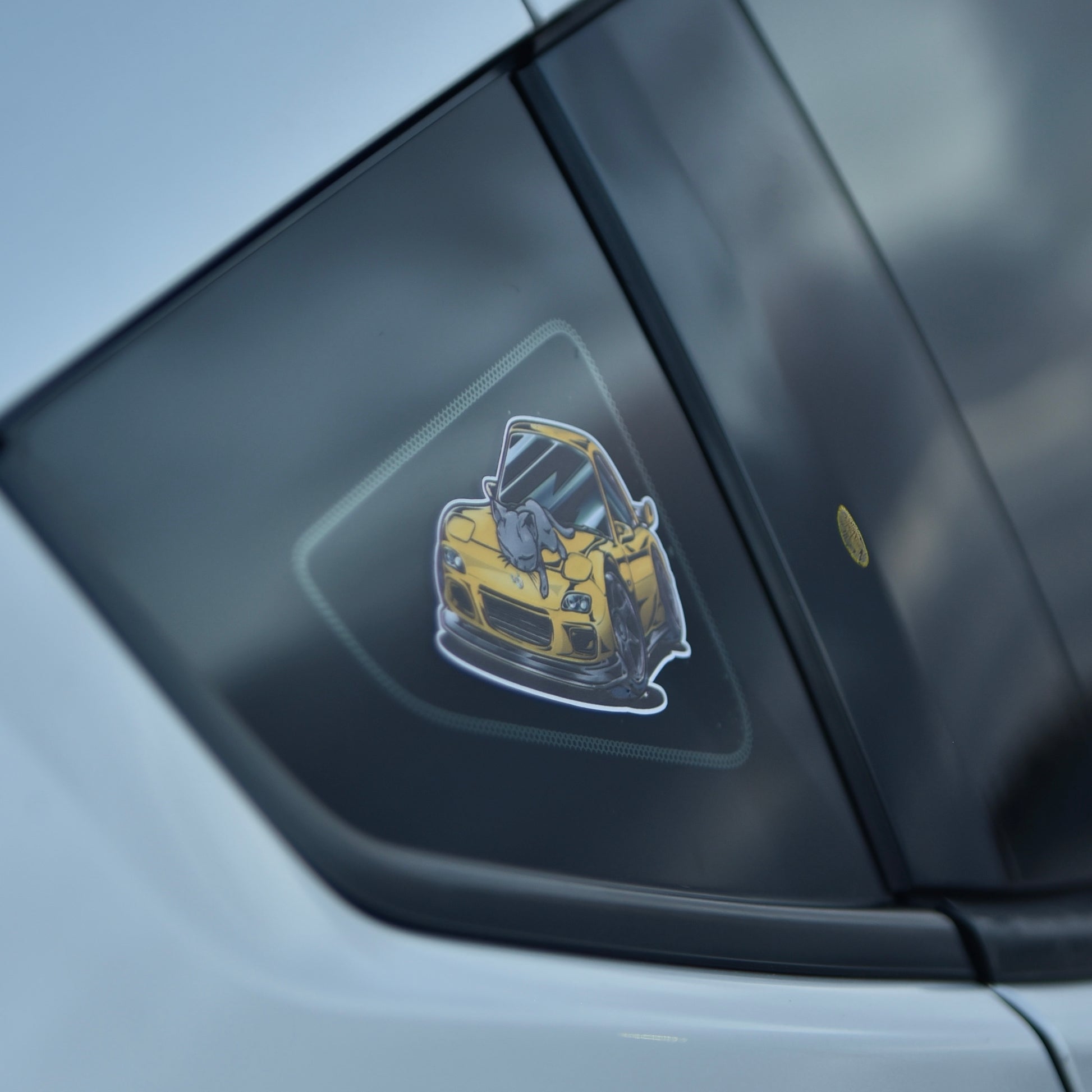 Custom Hand-Drawn Chibi Cat & Mazda RX-7 FD sticker, owned by @rx77br